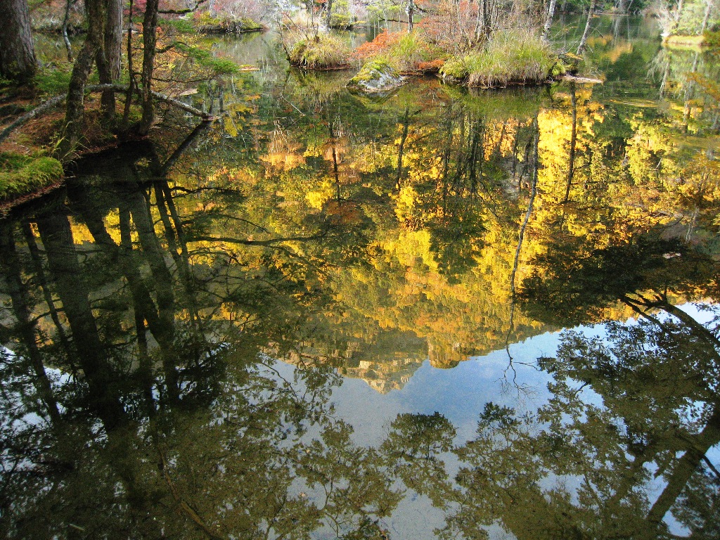 信州は高山と盆地の県で、他県に比して自然の紅葉は日本有数だと思う。登山者には、お好みの紅葉スポットがあり、登山のモチベ-ションになっている。渓谷、滝は空と水の青、岩の茶に紅葉が色付けて装飾します。